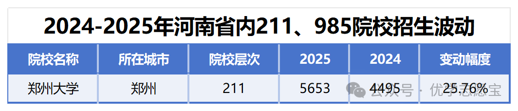 河南省内仅有一所211大学,即郑州大学。和2024年比拟,郑州大学招生打算添加了1158个,增幅为25。76%,申明有更多的考生能够上郑州大学。
