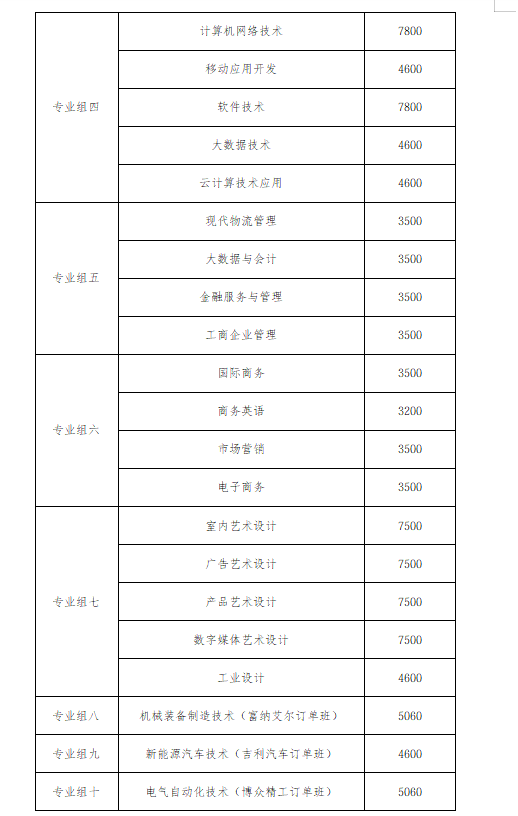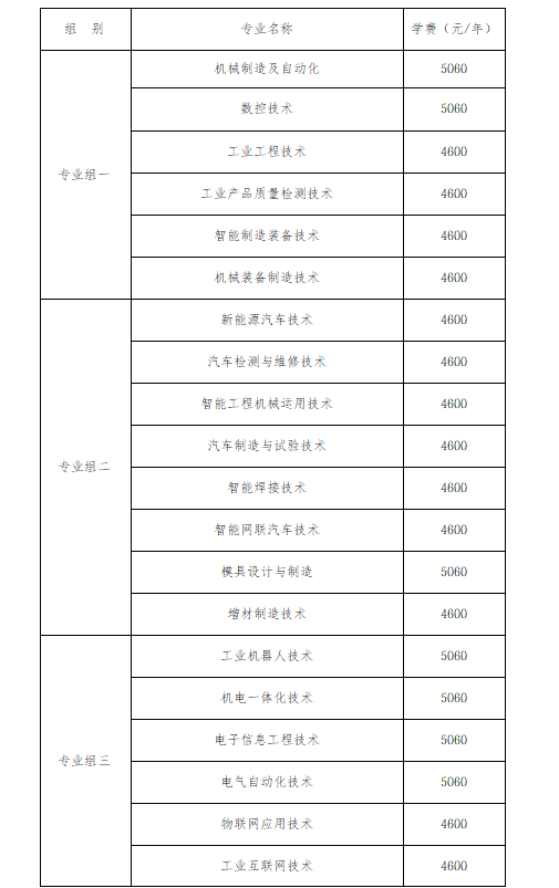 专业组二聚焦汽车及相关制制类专业,涵盖新能源汽车手艺、汽车检测取维修手艺等8个专业,此中模具设想取制制膏火为5060元/年,其余7个专业膏火均为4600元/年,智能网联汽车相关专业,就业前景广漠。专业组三以电气取从动化类专业为从,包含工业机械人手艺、机电一体化手艺、电子消息工程手艺、电气从动化手艺、物联网使用手艺、工业互联网手艺6个专业,前4个专业膏火为5060元/年,物联网使用手艺、工业互联网手艺膏火为4600元/年,契合智能化财产成长趋向。专业组四为消息手艺类专业,包含计较机收集手艺、挪动使用开辟、软件手艺、大数据手艺、云计较手艺使用5个专业,其入彀算机收集手艺、软件手艺膏火为7800元/年,其余3个专业膏火为4600元/年,适配数字经济成长需求。